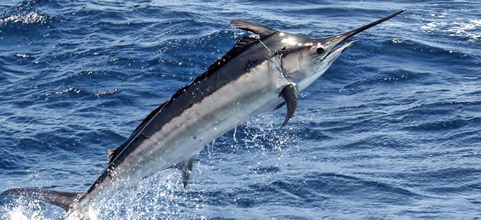 A Kékes fekete hátú nyársorrú halat vagy más néven fekete marlint (latin neve: Istiompax indica) tartják a világ leggyorsabban úszó tengeri élőlényének. A fekete marlin a sugarasúszójú halak (Actinopterygii) osztályának sügéralakúak (Perciformes) rendjébe, ezen belül a vitorláskardoshal-félék (Istiophoridae) családjába tartozó faj. A fekete marlin elsősorban a trópusi és szubtrópusi tengeri, óceáni vizeket részesíti előnyben. A fekete hátú nyársorrú hal megtalálható az Indiai- és Csendes-óceánokban. A hal leginkább a vízfelszín közelében tölti idejének nagyobbik részét, azonban 900 méter mélységben is előfordulhat, a 15-30 C fok hőmérsékletű vizeket kedveli.